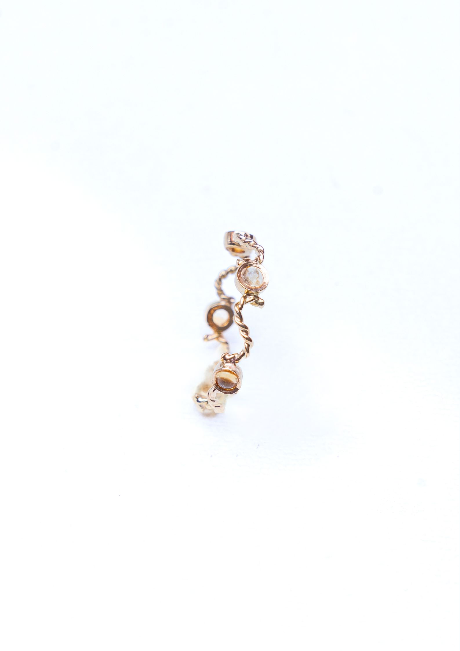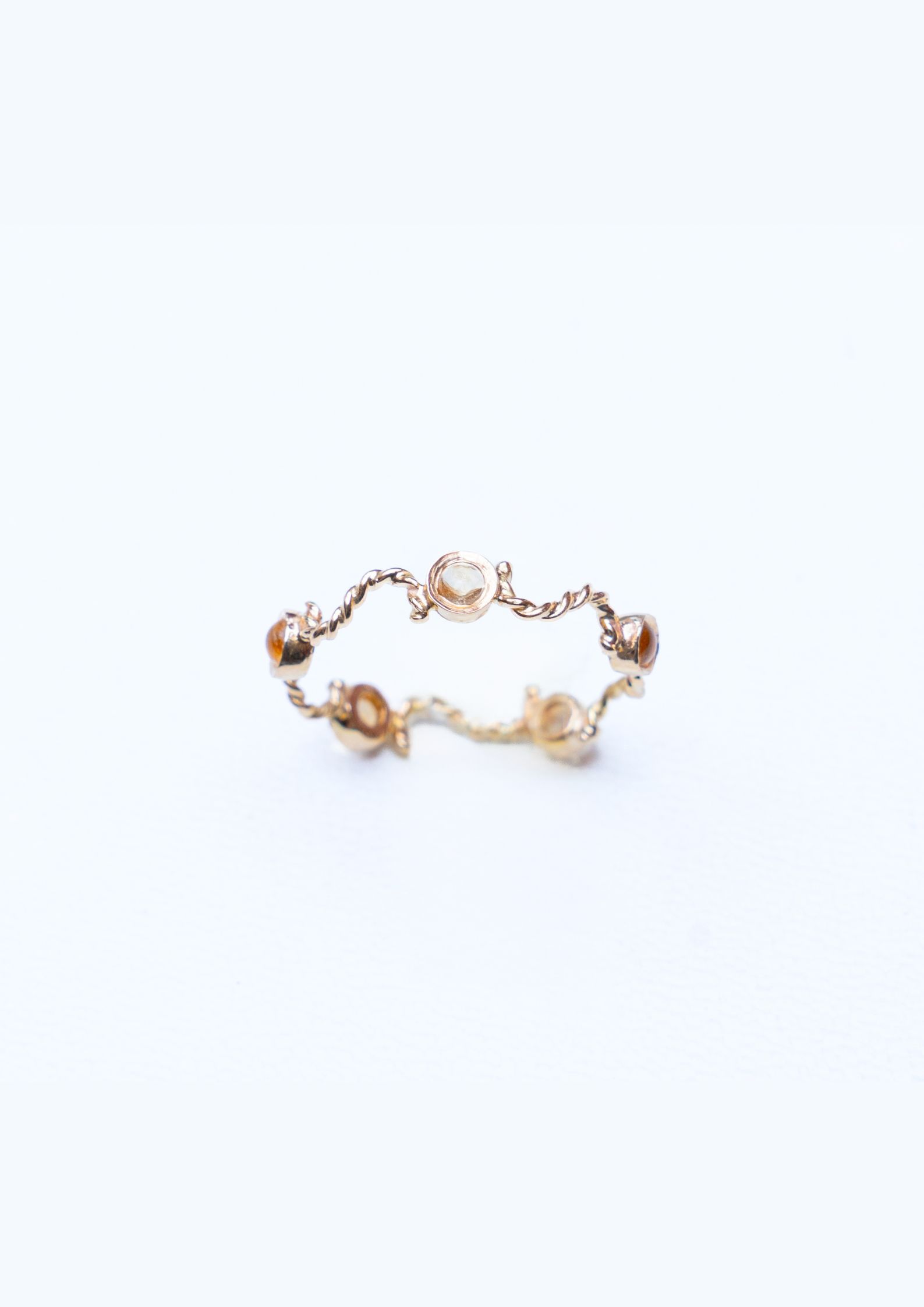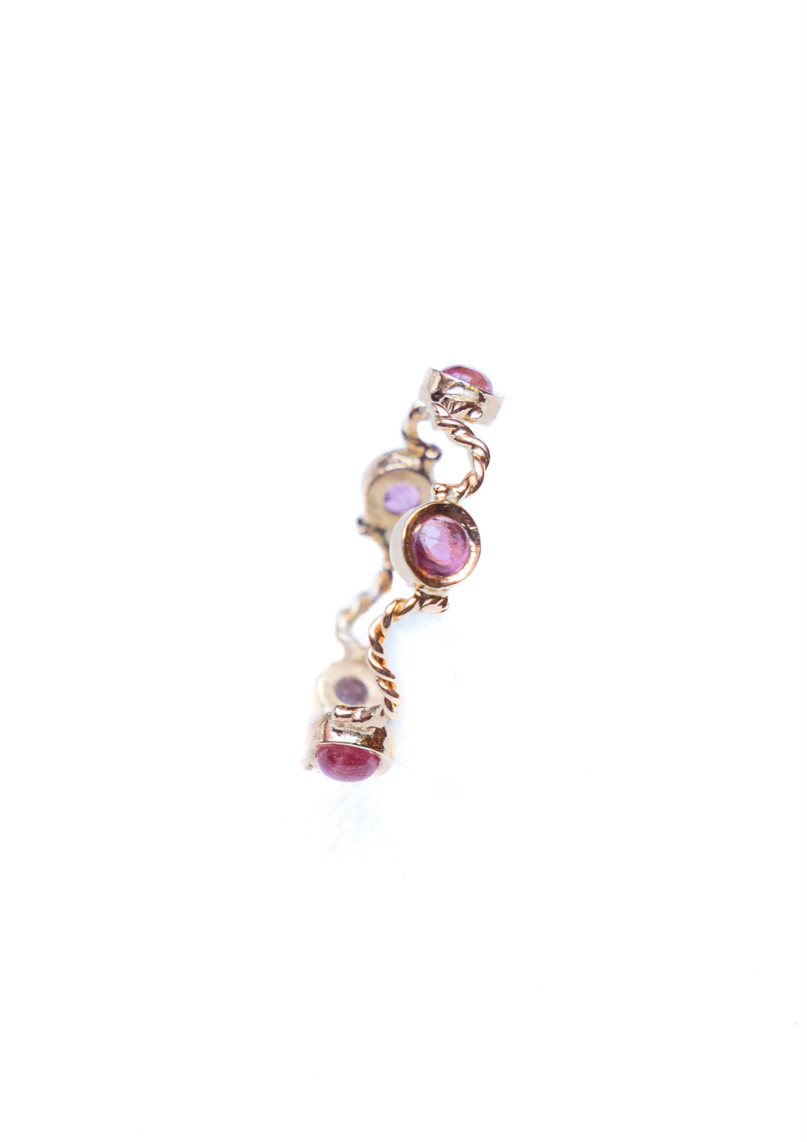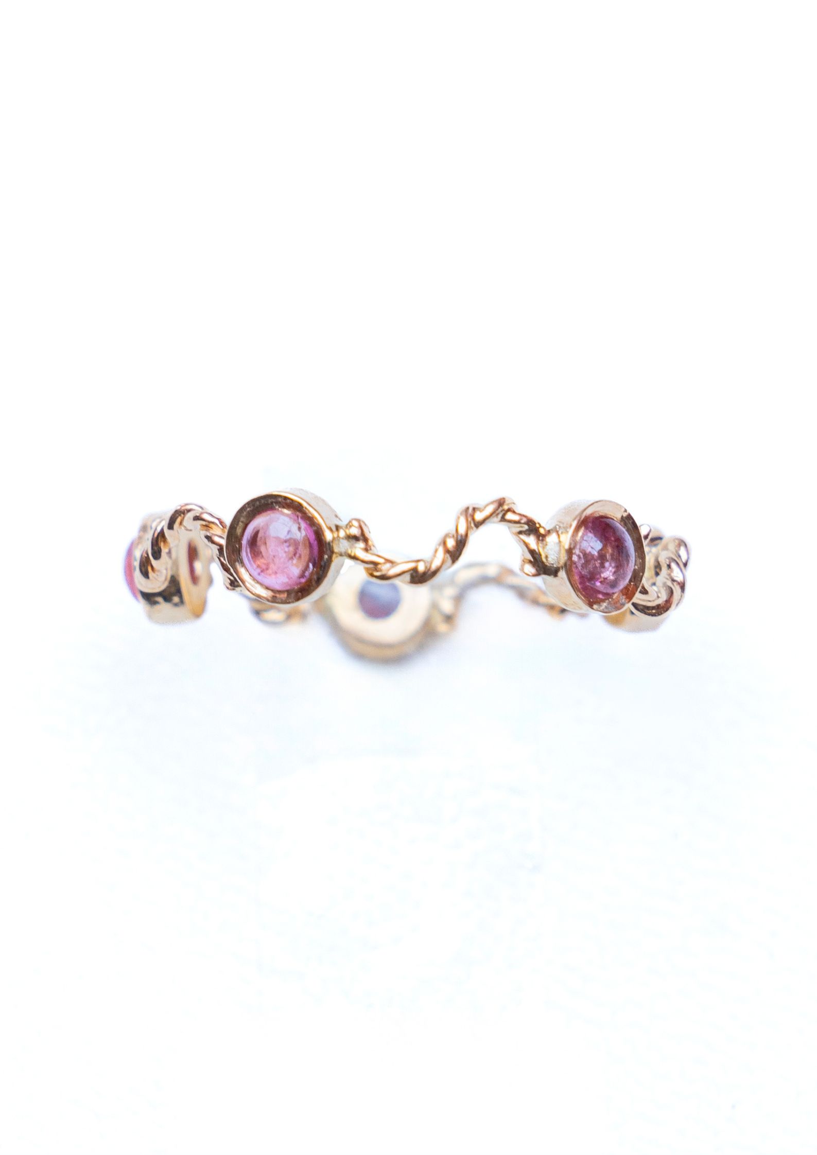Bague en or jaune18K , délicatement torsadé, enlace des tourmalines scintillantes,