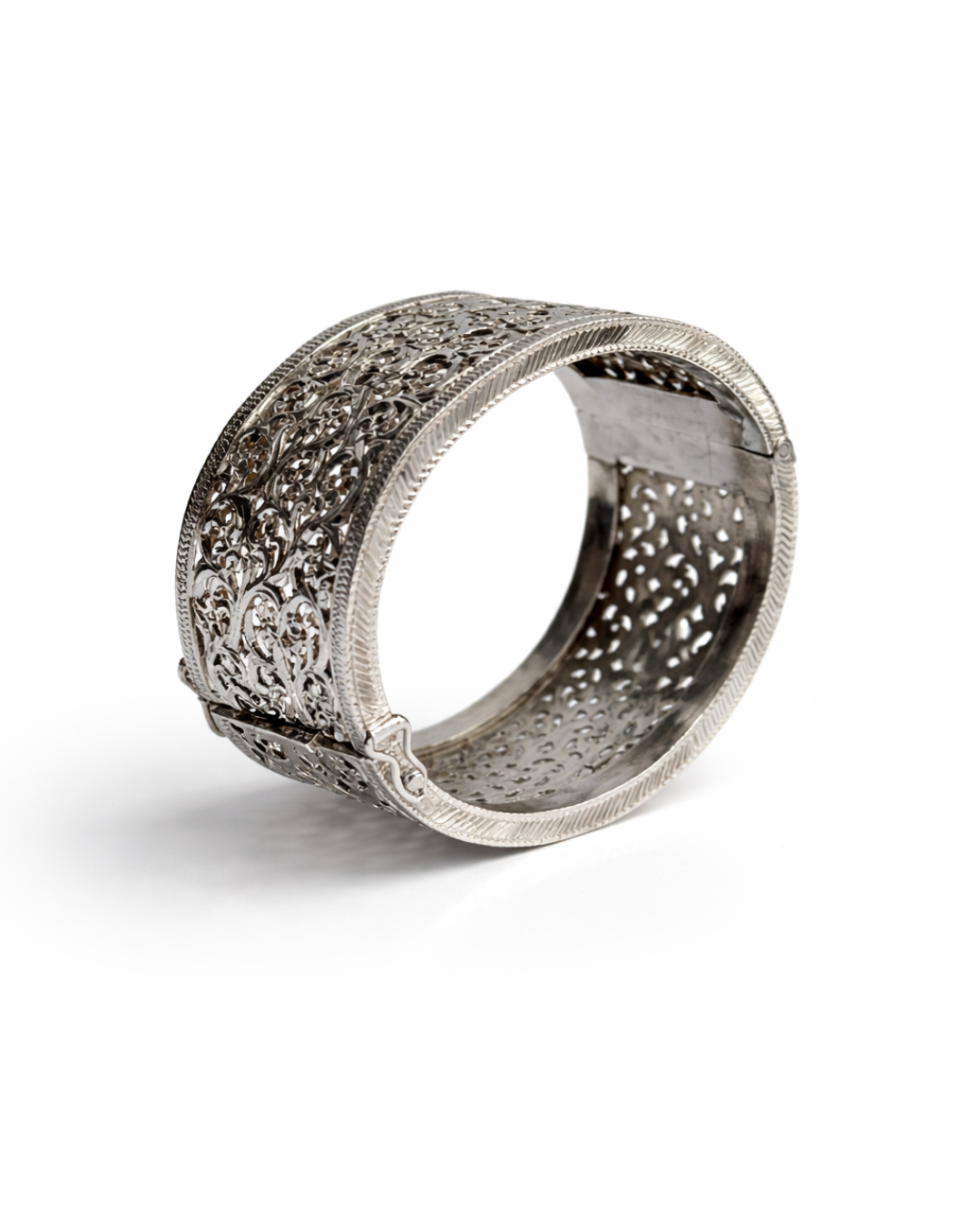 Délicatement ajouré, le bracelet Dentelle d’Argent évoque la précision des motifs traditionnels travaillés comme une véritable dentelle.